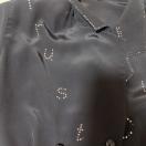 襟ぐりや身頃にアルファベットのスパンコールが付いていますが、かなり取れています