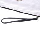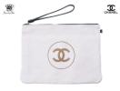 シャネルの店舗にてトートバッグを購入した際に付属しておりました大きめフラットポーチです。正面中央にはココマークが堂々と配置され、裏生地の麻素材が見えている素敵なデザインです。ストラップも付いており、クラッチバッグとしてお持ち頂けるサイズになっています。内側はカーフスキンを使用しており、仕切りポケットが付いているので荷物を分けて収納ができて便利です。