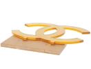 シャネルお馴染みの「ココマーク」の店舗ディスプレイです。ココマークと呼ばれるシャネルのロゴはアルファベットのCを2つ重ねたデザインになり、誰もがご存知でしょう。こちらはほぼ全ての店舗に飾られており、一般には流通しない希少なお品です。手にとってご覧になられることができる、絶好のチャンスかと思います。ゴールドのココマークは高級感がありインテリアとして綺麗な置物なので、CHANEL愛好家にぜひ飾って頂きたいオブジェです。