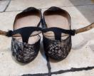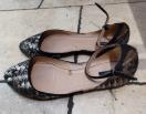 ZARAの黒とシルバーの模様のサテン地のようなパンプス