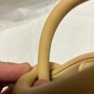 光沢感が魅力のフェイクレザーを使用しました。軽量でソフトな素材で使いやすい仕上がりです。