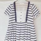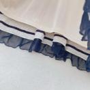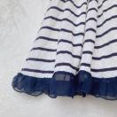 マリン風ストライプデザイン、レース装飾とチュールレースが爽やか半袖ワンピース。