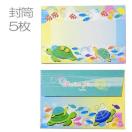 ウミガメとお魚のイラストが、カラフルでかわいいミニレターセットです。