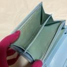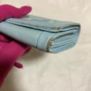 ピエールカルダンの、淡いブルー色が映える折り財布です♪しっかり目の素材です。カード入れ、札入れ、小銭入れは完備され、小銭入れはL字ファスナーで取り出しやすいです。