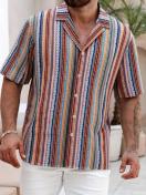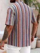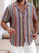 メンズ ヴィンテージ ストライプ柄 半袖 カジュアル 夏用 通気性シャツ、ビーチ・アウトドア ボタンアップ シャツ