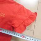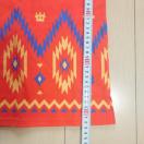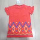 エスニック柄のオレンジチュニック、ポケット付き、フリル袖デザイン。