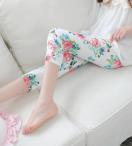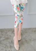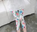 白地に赤や青の花柄がプリントされた7分丈レギンス。