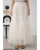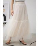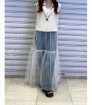 ■商品(デザイン)ポイント :トレンドのチュール素材使用したティアードスカートです。