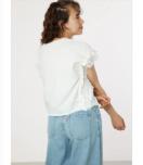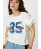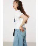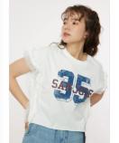 フリル部分にチュールをドッキングしたトップス。ガーリーになりすぎないアメカジのナンバリンググラフィックで、コーデに取り入れやすいアイテムです。