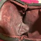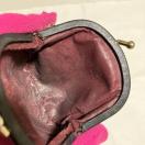 内側は深みのあるワインレッドの生地で、開けるたびに上品な印象を与えます。 がま口の金具はアンティーク調で、開閉もスムーズ。パチンと閉まる音が心地よく、安心感があります。