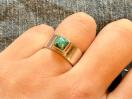 説明/ビンテージのターコイズシルバーリングです。925の刻印あり。リングゲージだと14号なのですが、13号の自分でちょっとキツいです。アームが太いので、12号くらいの方がちょうどいいのかな?と思います。使用に伴う傷や汚れ、くすみなどありますがまだまだお使いいただけます。写真にうまく写らなかった傷や汚れがある場合もありますのでご了承下さい。かっこいいですよ。おすすめ。ケースは撮影用ですので付属しません。