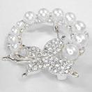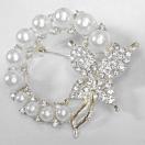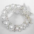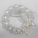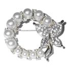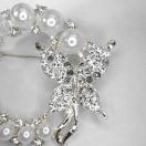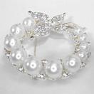 金属製の銀色に、人工真珠とラインストーンが散りばれられた可愛いブローチです。