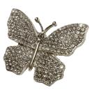 金属製の銀色の蝶に、ラインストーンが付いて可愛いブローチです。