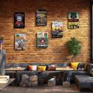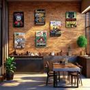 6個セットのヴィンテージメタルティンスイン、ガレージの装飾用 - クラシックアメリカナの壁アート用のレトロルート66車のシグナル - オールドスクールガレージデザイン