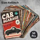 50枚入り ビンテージカーアンドインダストリアル風 ウォールコラージュキット - 10.16×15.24cm レトロポスタープリント - クラシックな部屋の装飾に最適 - アート愛好家とホームデコレーションファンへの完璧なギフト