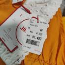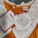 レース付き大きな襟のオレンジ色ワンピース、サイズ90。