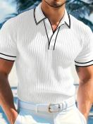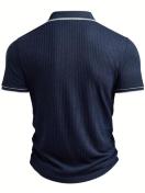 メンズライトブルーポロシャツ - カジュアルな夏の半袖、ボタンアップデタイル、ニット生地、ハーフカラー、レギュラーフィット、ホワイトウエストベルト、ポリエステルブレンド、カジュアルな夏の着物|半袖シャツ|ボタン詳細