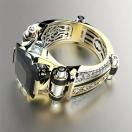 男性用ビンテージスタイルの合成ジルコニアエンゲージリング、ゴールドとブラックのスクエアエターナルリング、201ステンレススチール、日常の場面、贈り物の場面、パーティーの場面、バレンタインデー、マルディグラ、セントパトリックデー、すべての季節に