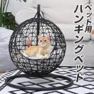 リゾート感あふれるラタン風デザインでリラックス、ペット用ハンギングベッド。