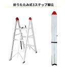 スリムで収納しやすい折り畳み式アルミ製脚立。