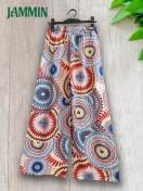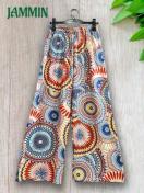 カラフルなアジアン紋様柄のゆるめパンツです。