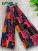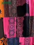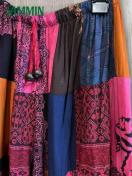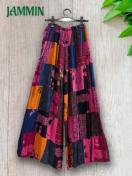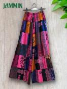 色々な柄生地(象、ペーズリー、植物、羽根など)を使ったパッチワークワイドパンツです。
