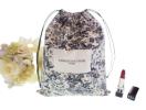 クリスチャンディオール 2021年ホリデーシーズン限定のノベルティ 巾着ポーチです。ゴールドに輝く草花の中を蝶・蜂・トンボなどの昆虫が舞うボタニカル柄が、華やかで躍動感あふれるミッドナイトブルーの世界に包まれています。両面同柄で、中央には「CHRISTIAN DIOR PARIS」と大文字ロゴがプリントされており、同時期にショッパー等のラッピングにもこのデザインが使用されておりましたが、巾着ポーチはあまり出回っていない希少品になります。バッグ内の仕分けにちょうどよい大きめサイズですので、旅行時にインナー等の収納にも活躍しそうです。