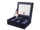 クリスチャンディオールのリップスティック コフレケースです。ベロア素材の上蓋はカナージュステッチ模様になっており、中央に「ROUGE DIOR」のロゴが入っています。マグネットがついた蓋を開けると大きめのミラーがあり、ルージュを横にして2本収納できる仕様になっております。メイクアップの時間が楽しくなること間違いなしのハードケースです。丈夫なのでアクセサリーケースとしてもお使いいただけます。