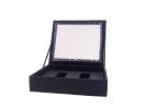 ディオールビューティーの上海限定ノベルティ ミラー付きハードケースになります。キャンバス素材の上蓋はカナージュステッチ模様になっており、中央にはシルバーの「CD」のロゴが入っています。マグネットがついた蓋を開けると裏には大きめの鏡があり、リップスティックを2本収納できるボックスになっています。メイクアップの時間が楽しくなること間違いなしのハードケースは、インテリア雑貨の小物入れとしても、アクセサリーの収納としてもお使い頂けます。