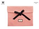 グッチビューティーのノベルティポーチです。2020年に香水「グッチ ギルティ」シリーズから数量限定で発売されたカップリングフレグランス「グッチ ギルティ ラブ エディション」を購入時に配布されていました。オードパルファム ボトルと同色の柔らかい印象がするサーモンピンクの本体には「GUCCI beauty」のタグが縫い付けてあり、リボンで開閉する少し珍しいタイプのフラットポーチになっています。急に収納する物が増えてしまっても、結び方を調節すればフラップに収まります。リボンが特徴的なので、周りの方と差をつけられるポーチになっています。