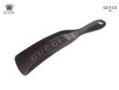 グッチ 顧客限定品の靴べらです。センターに「GUCCI」のロゴが入りました希少品になります。靴べらとして通常使用はもちろん、フックにかけられる穴が空いていますので玄関先に吊り下げるだけでホールがオシャレに早変わりする一際目立つ素敵なアイテムです。ロングタイプとは違い手狭な玄関でも場所をとりません。お色は落ち着いたブランカラーになります。