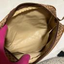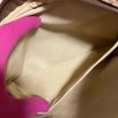 落ち着いたベージュ地に、特徴的なPマークのモノグラムが全面にあしらわれた、レトロシックなデザインが魅力の一品。