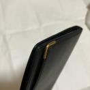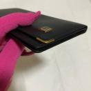 上質なブラックレザーに、ゴールドのロゴ金具が映えるスタイリッシュなデザイン。薄型でスーツのポケットにもスマートに収まり、ビジネスシーンにも最適です。