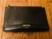 内側はゴールドファイルのロゴがデザインされた総柄のライニングで、細部にまでこだわりが感じられます。ジッパー付きのポケットも複数あり、収納力も十分に確保され、背面にもジッパーポケットがあるため、すぐに取り出したいものを収納するのに便利です。