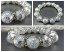 半透明感有り、ミルキーホワイト色ですが半透明のためややミルキーグレー色に見えます。石に目立つ傷がございません。若干形の不揃いや穴近く部分に小凹みがあることがございます。
