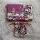 淡い色、ミニ巾着も裏地あり♪まちなし