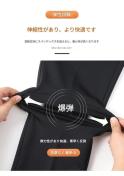 伸縮性がある素材を使用したパンツ、動きやすく、窮屈感を解消!