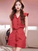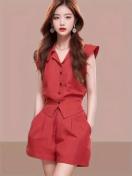 女性用 夏新スリムフィットトップハイウエストフレッティングショーツカジュアルツーピースアウトフィット