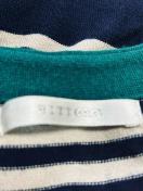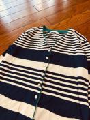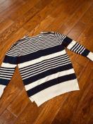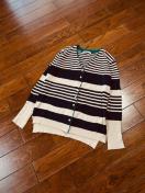 伸びの良い着心地抜群の生地に着痩せ効果あるボーダー柄で前にポケットつき。