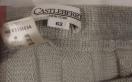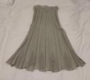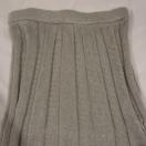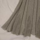 ニット素材のグレーグリーンのプリーツスカートで、通気性のあるレースニットデザインが特徴です。