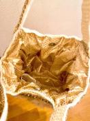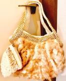 一粒のビジューがついたミニポーチ付き、中はドット柄、持ち手はゴールドと、かわいい&ゴージャスなcache cacheのファーバッグ