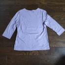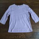 薄紫の七分袖ラウンドネックTシャツ、コットン混合素材で快適な着心地。