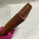上品なブラウンカラーに、アクセントとしてオーストリッチ型押しが施された、高級感あふれるデザインです。