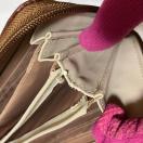 開閉しやすいラウンドファスナータイプで、中身がこぼれ落ちる心配もありません。大きく開くので、中身の確認や出し入れもスムーズです。
