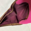 コンパクトながらも収納力はしっかり。小銭入れ、お札入れ、複数のカードポケットを備え、使い勝手も抜群です。内側のワインレッドのライニングが、開けるたびにさりげないお洒落を演出します。