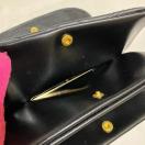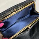 しっとりとした手触りの良いブラックレザーに、ふっくらとしたキルティング加工のようなデザインが施された、エレガントなヴィンテージクラッチバッグです。お財布としてもお使いいただける機能性と、クラシカルながま口デザインが魅力の一品★