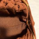 しっとりとした手触りの良い素材と、美しいドレープが特徴的で、丸みのある可愛らしいフォルムながらも、がま口のゴールド金具がアクセントとなり、クラシカルで洗練された印象を与えます。