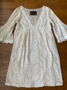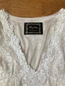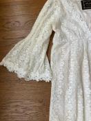 白レースですが身頃はシャンパンゴールドの裏地付きなので若干アイボリーっぽく見え、袖部分は裏地無いので白です。