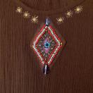 エスニックなアジアン風のビーズ刺繍と袖の刺繍が特徴です。