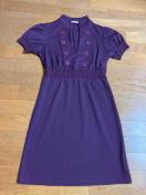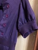 広がっていないスカート裾と深みカラーが大人っぽく、対に並ぶボタンとパフスリーブの、かわいさもあるかと思います。